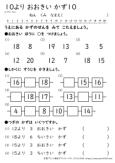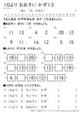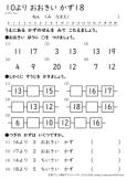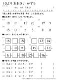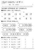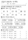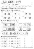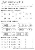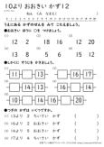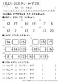 数直線(かずのせん)を見ながら、20までの数についての大小や系列を学ぶためのプリントです。