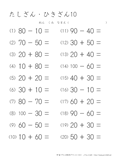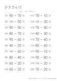 20より大きい数のひき算のプリントです。たし算の時と同じように、10のまとまりがいくつあるのかを考えて計算をするようにしましょう。