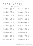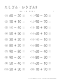20より大きい数のたし算・ひき算のプリントです。たし算と引き算がランダムに出されています。この学習のまとめにどうぞ。