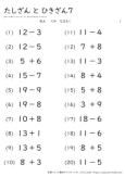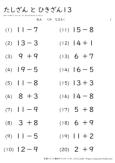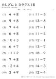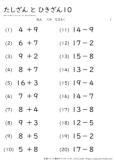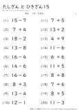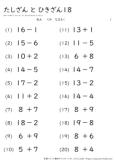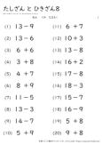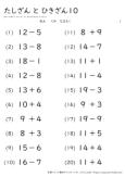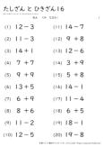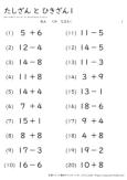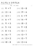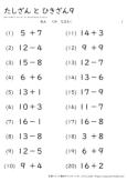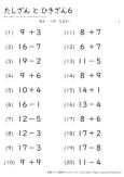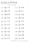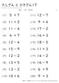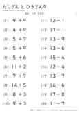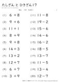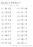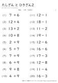 くり上がりのあるたし算とないたし算、くり下がりのあるひき算とないひき算がランダムに出題されています。