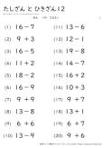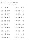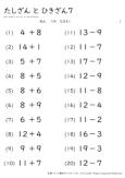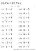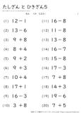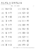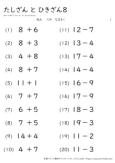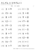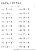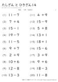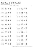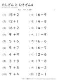 くり上がりのあるたし算とないたし算、くり下がりのあるひき算とないひき算が出題されています。