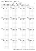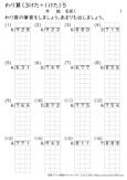 2けた÷1けたのわり算の筆算を復習したい場合は、1けたで割り切れるわり算の筆算やあまりのあるわり算の筆算(2けた÷1けた)をどうぞ。
