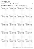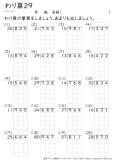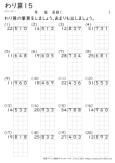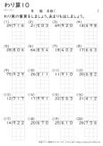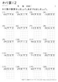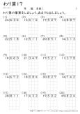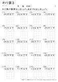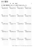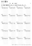 わり算の筆算のプリントです。今回の問題はわられる数が3けた、わる数が2けたの問題です。