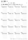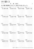 筆算をすると商が1桁になる問題です。あまりが出るものもあれば、割り切れる問題もあります。 3けた÷2けたの筆算1 |