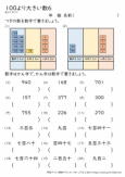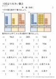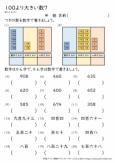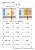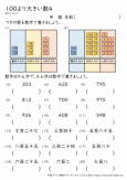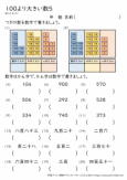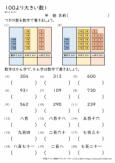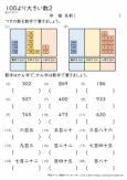 100・10・1のまとまりの数から数字に表したり「123→百二十三」「四百五十六→456」というように漢字は数字に数字は漢字に直して書いたりする問題があります。