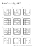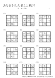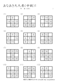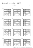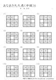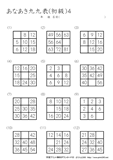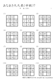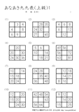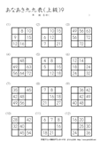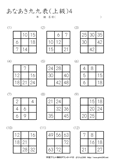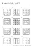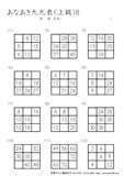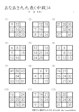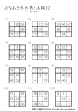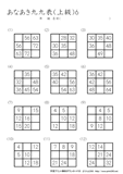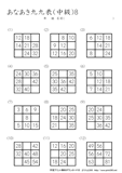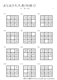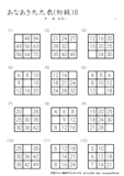 9ますのうち2ますを答えるプリントです。初級の問題に慣れてきたら、挑戦をしてほしいです。