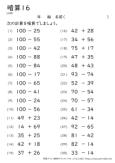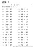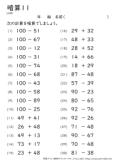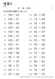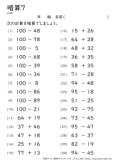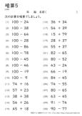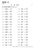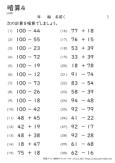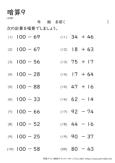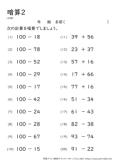 100からの引き算や2けたの数のたし算やひき算を暗算で行う学習です。