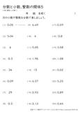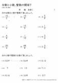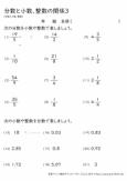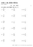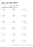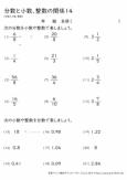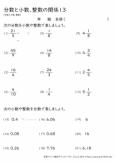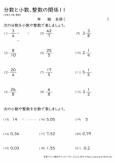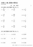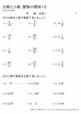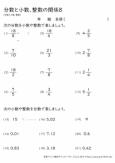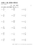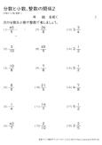 分数を小数や整数で表したり、小数を分数で表したりするプリントです。