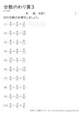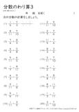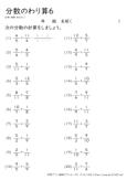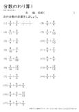 分数のわり算のプリントです。分数のかけ算と同様に、何度も挑戦をしてやり方を身につけてほしいと思います。