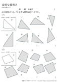 台形・平行四辺形・ひし形・正方形・長方形を対角線で分割してできた三角形の合同についての問題が出題されています。