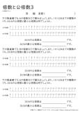 2つの数と3つの数の最小公倍数を求める問題が出題されています。 これから習う通分や約分の学習に向けて、何度も挑戦をして、数の感覚を身に付けてほしいです。 最小公倍数1 |