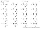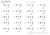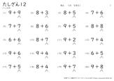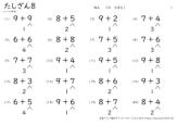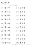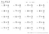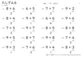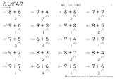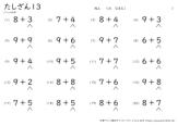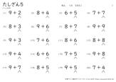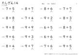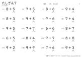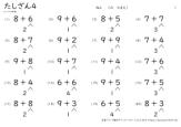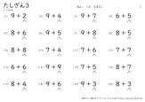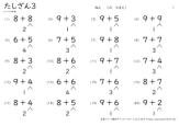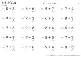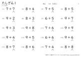 たされる数が6~9の繰り上がりのあるたし算です。さくらんぼで分けて考えることができるようになったら、こちらのプリントにも挑戦してしてほしいです。 繰り上がりたし算1 |