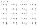 たす数たされる数と合わせて10となる数にわける練習です。さくらんぼのような図で描きます。はじめのうちはこのプリントから練習をしていくといいと思います。 今回のプリントでは、数の大小に関わらず全て、たす数を分けるように作られています。しかし、数を分けるときにはたす数を分ける必要はありません。たす数とたされる数のうち、小さい数の方を分けた方が分かりやすいのかもしれません。 さくらんぼ計算1 |