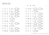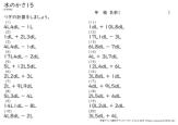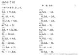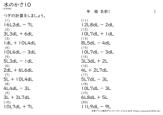 水のかさの計算問題です。はじめの10問はたし算、残りの10問はひき算の問題です。くり上がりやくり下がりはありません。