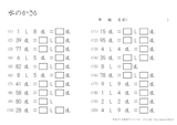 水のかさの単位換算のプリントです。1L=10dLというものは1cm=10mmと似ていますので、応用してすぐに解ける子もいるのではないでしょうか。