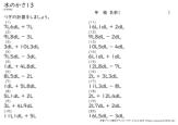 水のかさの計算です。たし算とひき算とがランダムに出題されています。