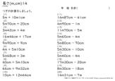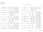 長さの計算です。はじめの10問はたし算、残りの10問はひき算の問題です。くり上がりやくり下がりはありません。