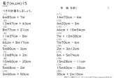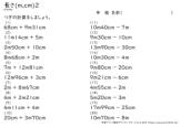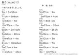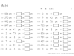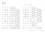 mとcmの単位換算のプリントです。2つ目の長さの単位換算の学習です。1m=100cmなのですが、これまでに学習をした1cm=10㎜と区別ができなくなり、10かな?100かな?と手さぐり状態になったり、勘で答えようとする子が多くなってきます。また、138cm=1m38cmはすらすらとできても、習熟が十分ではないと、205cm=2m5cmのところを2m50cmや2m05cmと考えてしまう場合があります。逆の換算でも2m5cmを250cmと間違えをする場合が多いです。しっかりと理解をして問題を解いていってほしいです。