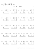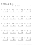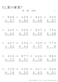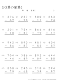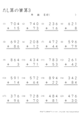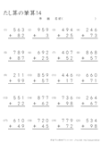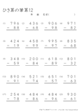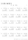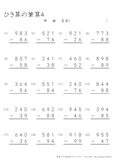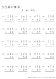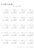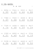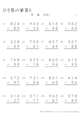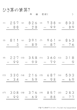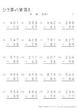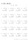 大きい数のひき算の筆算です。3けた-2けたの問題です。たし算と同様に繰り下がりの見落としのないように計算してほしいです。