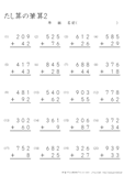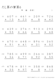 大きい数の筆算です。3けた+2けたの問題です。繰り上がった数を見落とさないように注意して計算してほしいです。