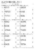 「○の位を四捨五入」「○の位までのがい数」「上から○けたのがい数」の問題が出題されています。四捨五入のまとめにどうぞ 四捨五入まとめ1 |