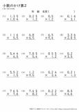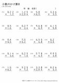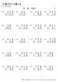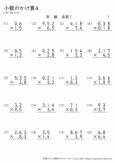 小数点以下の末尾に「0」があるときには「0」を消しますが、このプリントにはそのような問題は出題されていません。小数×小数の筆算の学習の練習としてご利用ください。