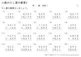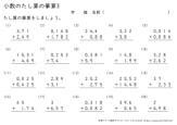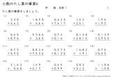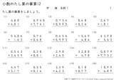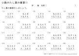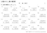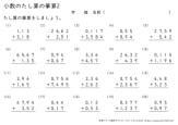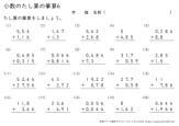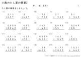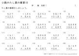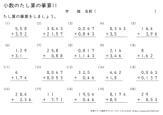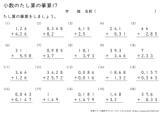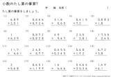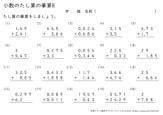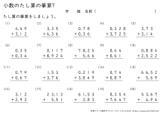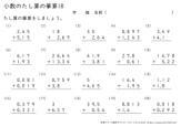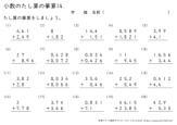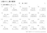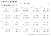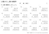 小数のたし算の筆算を初めて学習した時にはこちらのプリントをどうぞ。計算の最後に小数点を打つことを忘れずにしっかりを解いていきましょう。はじめから筆算の問題は書かれています。