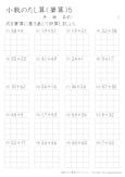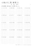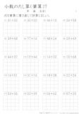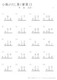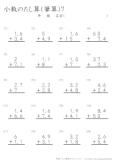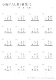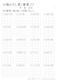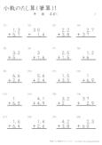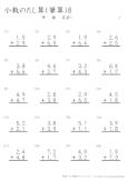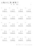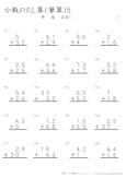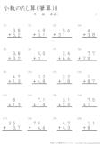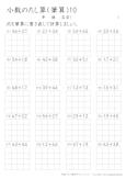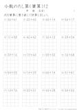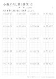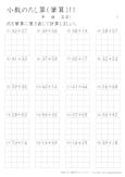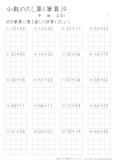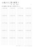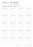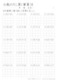 小数のたし算の問題です。小数の学習は3年生で初めて学習します。これによって、単位量に満たなかったはしたの大きさを表すことになります。ここでは筆算を使って解いていく問題を用意しています。問題としては、はじめから筆算が書いてあり、それを計算をしていく問題と自分で筆算を書いて計算をしていく問題があります。