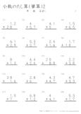 位をそろえて計算をするたし算の筆算を自分で書くプリントです。位をそろえて書くことに気を付けてほしいです。初めは位に空欄があることに違和感があるかもしれませんが、何度も練習をして慣れていってほしいです。このプリントでも、小数点以下が0になった時には斜線で0を消すことを忘れないように気を付けてほしいです。