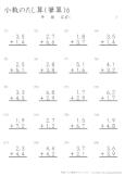 位をそろえて計算をするたし算の筆算のプリントです。空欄は0と考えて計算できるとよいです。また、今回のプリントでは、計算をすると小数点以下が0になる問題もあります。その際は、0の上から左上から右下への斜線を引いて0を消すようにします。この処理も忘れないように気を付けてほしいです。