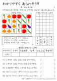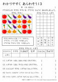中には、同じものを一気に数えて、そのものの数だけグラフに丸を付けていく子もいます。そのやり方も、落としが少ないです。