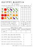グラフに表すときには、具体的な絵や言葉から、「○」に置き換えて考えていきます。